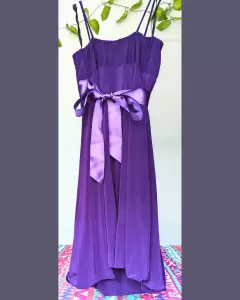 Vestido corto con forro, tirantes, con listón y detalle al frente.