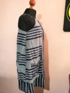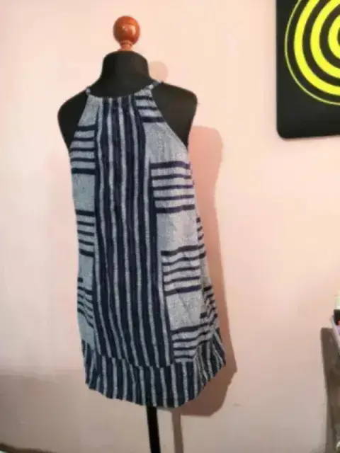 Vestido amplio tipo halter corte A una sola puesta, tela tipo lino, da entre talla 32 a 34, mide 88cm desde el hombro