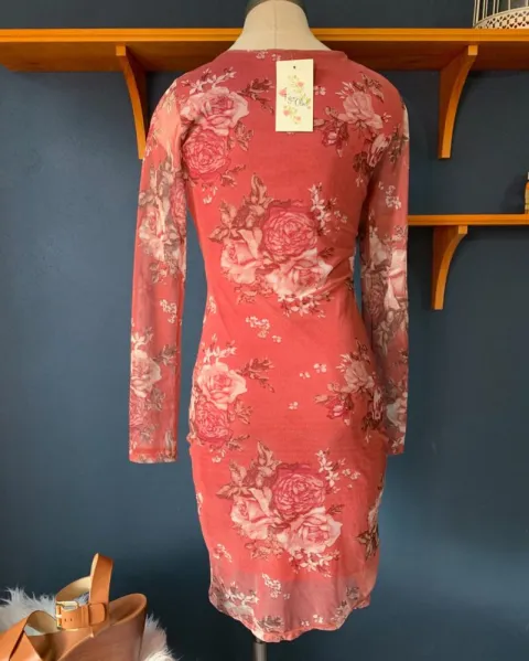 Vestido tipo mesh. Vestido ceñido al cuero. Es M reducido a s, forro en torso y brazos con transparencias. Estira un poco amoldándose al cuerpo