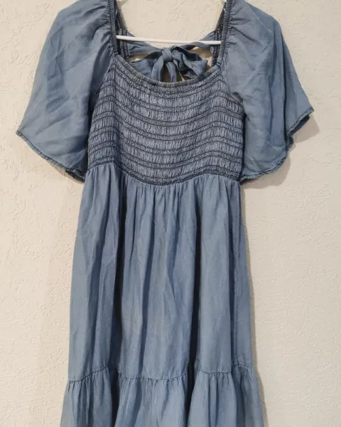 Hermoso vestido tipo mezclilla talla S, queda hasta la M, solo se usó una vez, como nuevo sin detalles, marca philosophy