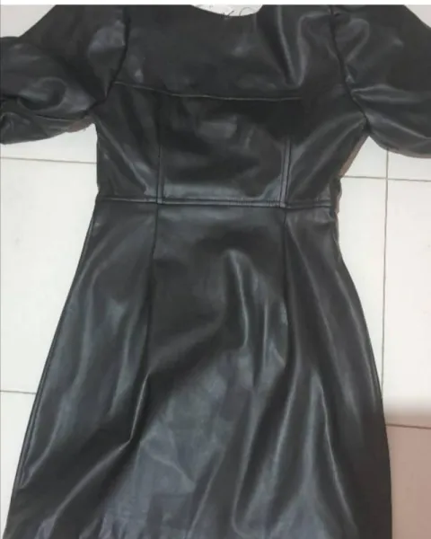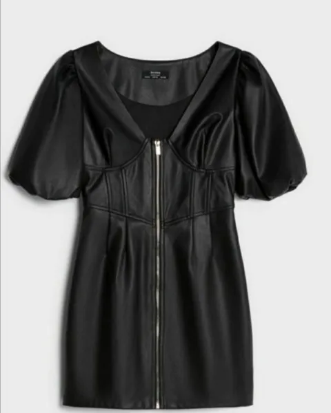 Vestido tipo vinipiel Bershka. Vestido vinipiel, cierre al frente, manga aglomerada, nuevo, da muy buena figura