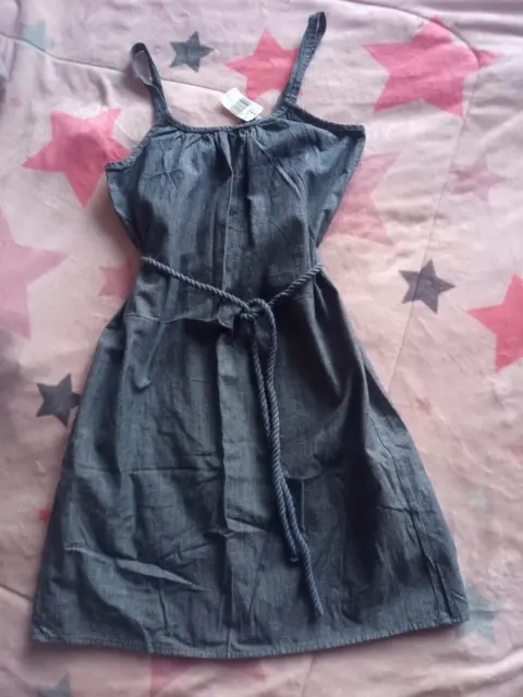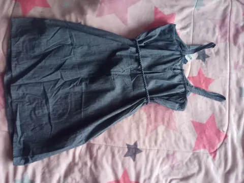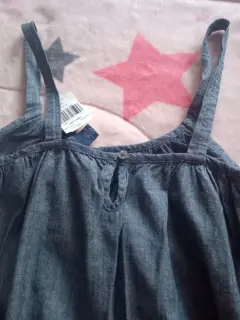 tela ligera, color azul mezclilla, de tirantes y cinta en la cintura para ajustar... Nuevo...