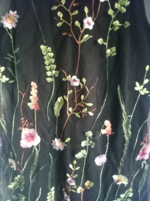 Vestido corto, doble tela, talla mediana, fondo negro y tela delgada con bordados encima