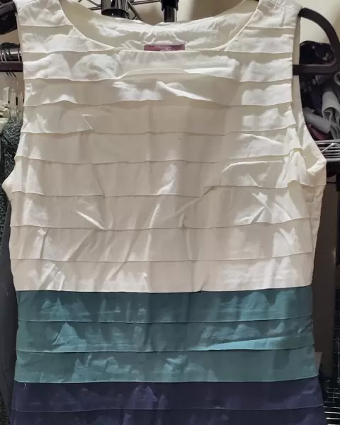 Vestido tricolor. Vestido tricolor (blanco, verde y azul) sin mamgas, con forro, marca Trucco, talla 40