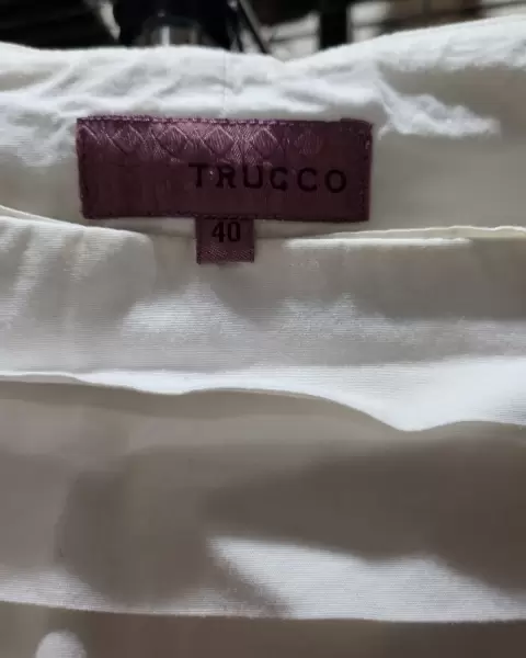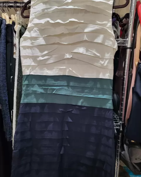 Vestido tricolor (blanco, verde y azul) sin mamgas, con forro, marca Trucco, talla 40