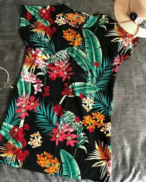 Vestido tropical marca shein. Vestido talla XS de la marca shein tiene una puesta esta súper hermoso 🥰🥰🥰Medidas:Hombro: 65.5cm Pecho: 99cmContorno de cintura: 96cmContorno de cadera: 103 cmLargo de manga: 23.1 cmLargo del vestido: 84 cm