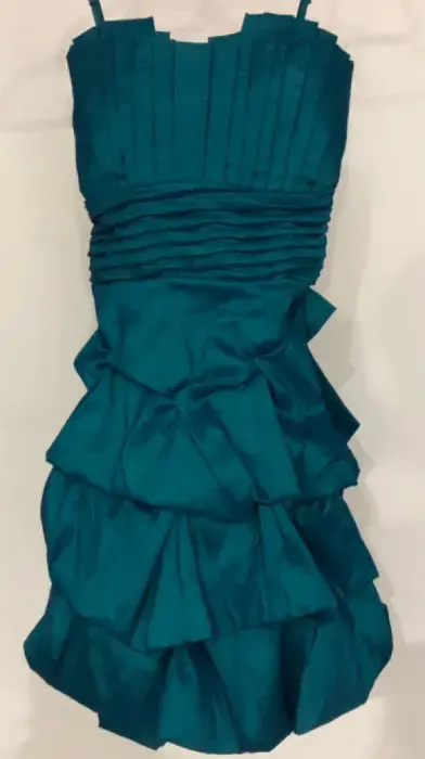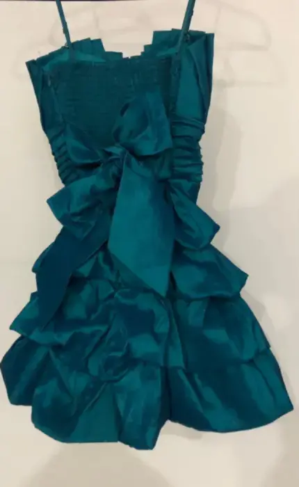 Vestido turquesa mini mujer Dúo Woman chica. Vestido mini, llega a media piernaMarca: Duo WomanColor turquesaTalla chicaStraplessSe uso una sola vez