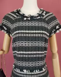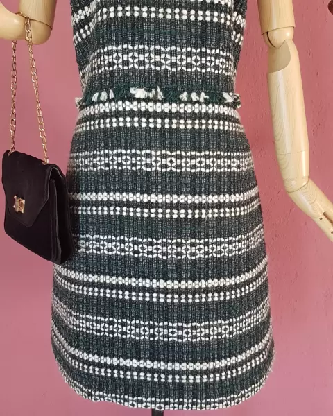 Hemoso vestido tweed verde/blanco. Em cuello y manga tiene lentejuela negra 😍 Marca Tory Burch. En excelente estadoTalla 12Medidas (lado a lado):Busto 49cmCintura 44cmCadera 56cmLargo 94cm