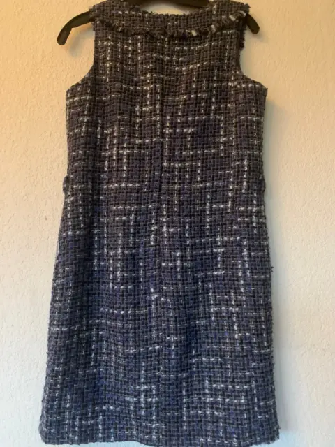 Vestido de tweed , sin mangas , diseño cuadriculado (azul, gris , negro), con cierre en la espalda y detalle de bolsillos al frente, talla 7 , marca FOLEYS joy