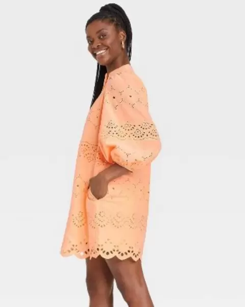 Vestido Universal Thread. Vestido en tela de algodón, con forro, 34" de largo, con botones en las mangas.Tiene 2 ligeros detalles de los cuales anexe foto.