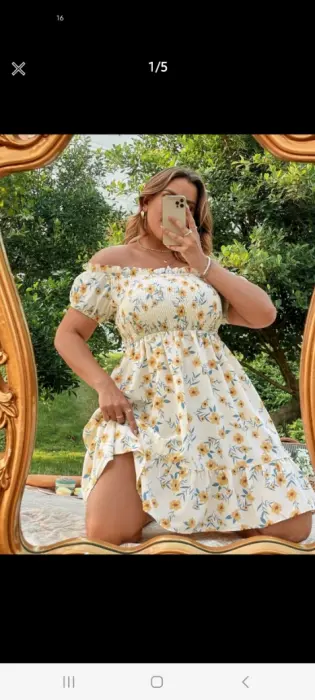 Hermoso vestido veraniego, con estampado floral de hombros descubiertos y fruncido en pecho. Ideal para una cita casual con familia o amigos