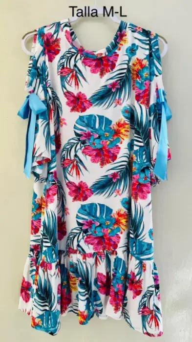 Vestido veraniego amplio con hombro descubierto, floreado talla M-L con mucha caída