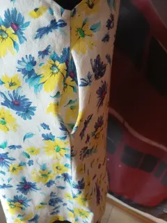 Tienes unas aberturas en la cintura muy coquetas. El color es muy primaveral , la telanes pique de algodón muy fresca. Tiene forro de algodón lo que hacer que no se transparente y horme mejor