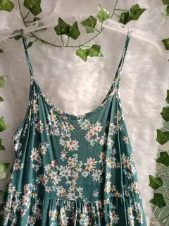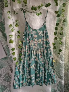 Vestido verde con flores blancas. Hermoso vestido verde, ideal para esta temporada te encantará, luce muy lindo queda talla S o M☺️❤️