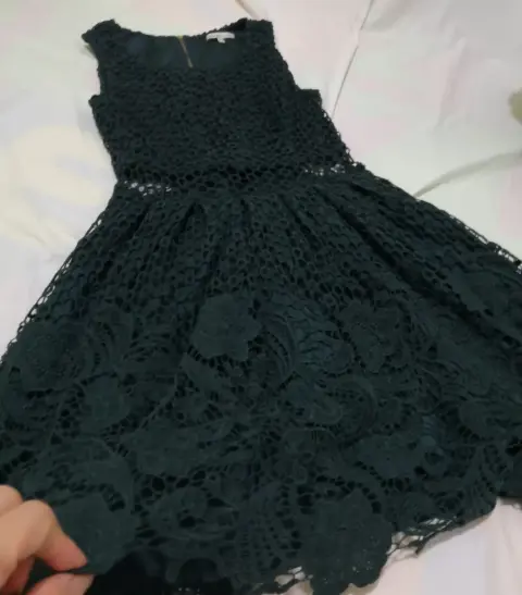 Vestido verde corto de encaje. Vestido bellísimo en perfecto estado no estira pero trae cierre para que sea super práctico a la hora de usar.Si es tu primer comora te regalo mi cupón de descuento.