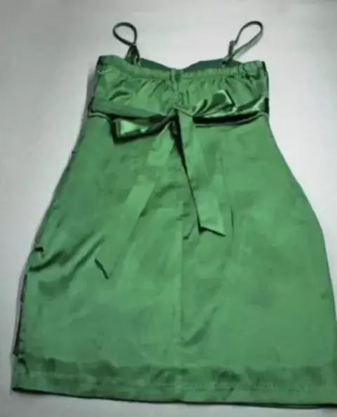 Vestido verde de cocktail con pedrería Talla S-M. Vestido cocktail / noche corto verde con pedrería en la parte baja del escote muy lindo y trae un coqueto moño en la parte de atrás.