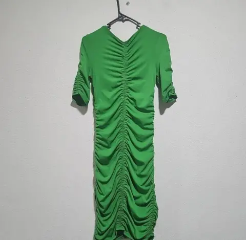 Vestido verde de pliegues casual - formal, talla mediana, sin detalles. Prenda nueva sin etiqueta.