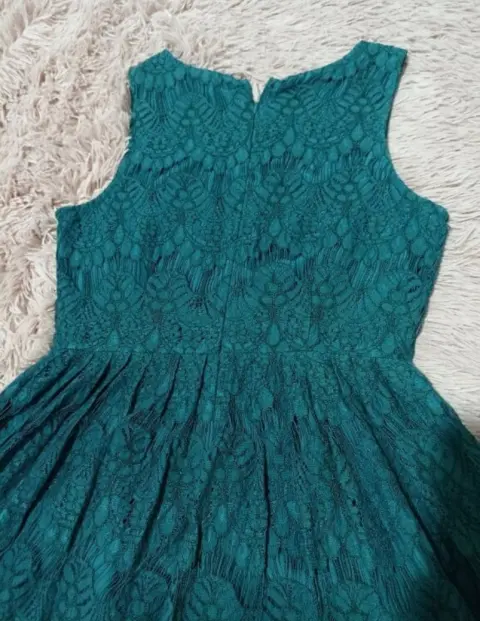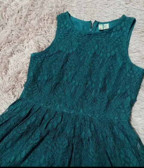 Vestido Verde encaje. Lindo vestido la tela no se estira Tiene forro, cierre en la espalda Pecho: 89cm (circunferencia )Cintura: 71cm