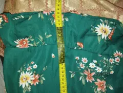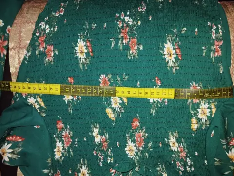 Hermoso vestido color verde floreado,de manga larga, tela suave fresca, cuenta en la parte superior con cuello tipo drapeado, tela tipo resorte en la parte superior, en la parte inferior cuenta con faldón y fondo detalle tipo olan, botón en cuello, y pequeño detalle de abertura súper lindo. Marcado como talla M-G, medidas en la última foto.No lo puedes dejar perder 🥰🥰🥰🥰🥰🥰☺️☺️☺️☺️👻
