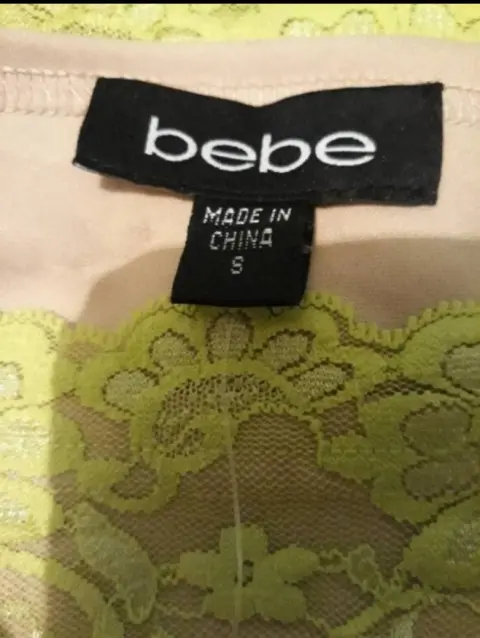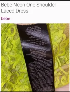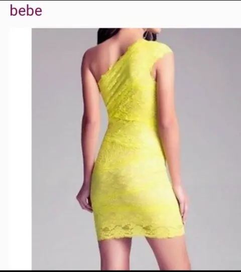 Vestido verde limón BEBÉ. Magnifico vestido verde limón de un hombro de delicado encaje con forro color beige, talla S, completamente nuevo sin etiquetas.