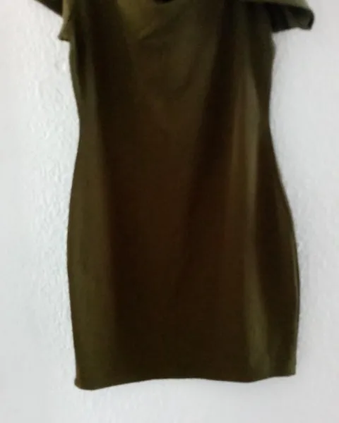 Vestido verde militar, con escote en los hombros, lo puedes utilizar con tenis o zapatillas. Se ve muy bonito puesto!