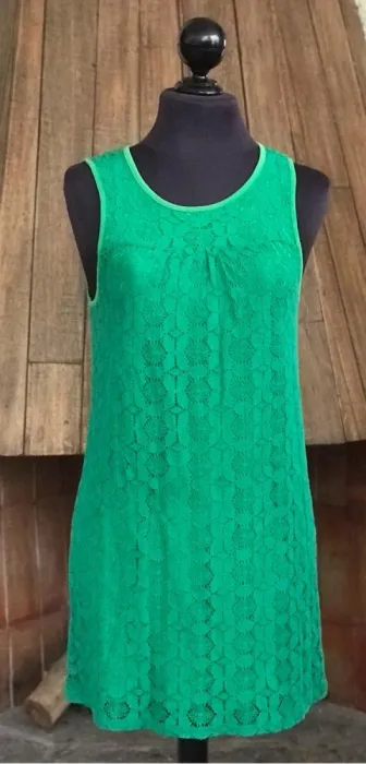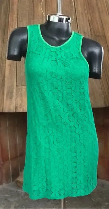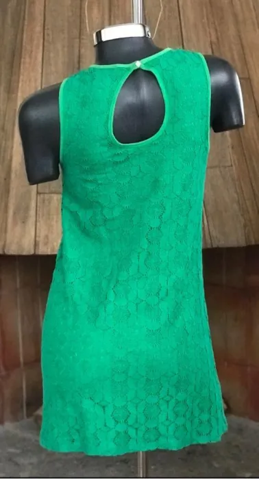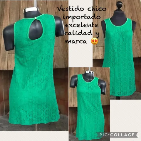 Vestido verde tipo sesentas. Padrísimo vestidito de encaje es de algodón excelente marca de calidad tipo sesentas es un poquito abierto nada corto tiene un detalle que se jaló un poquito de los hombros y del escote pero no se nota mucho Super buen precio sólo lo usé una vez