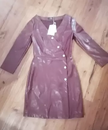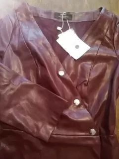 Vestido vinipiel, Nuevo, sin detalles, color vino, con broches, precioso.