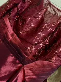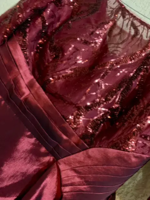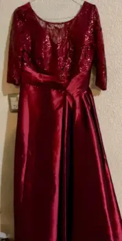 Vestido largo de dama. Con mangas color vino.Parte superior con detalles de lentejuelas.Largo de la falda 100 cm