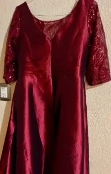 Vestido vino. Vestido largo de dama. Con mangas color vino.Parte superior con detalles de lentejuelas.Largo de la falda 100 cm