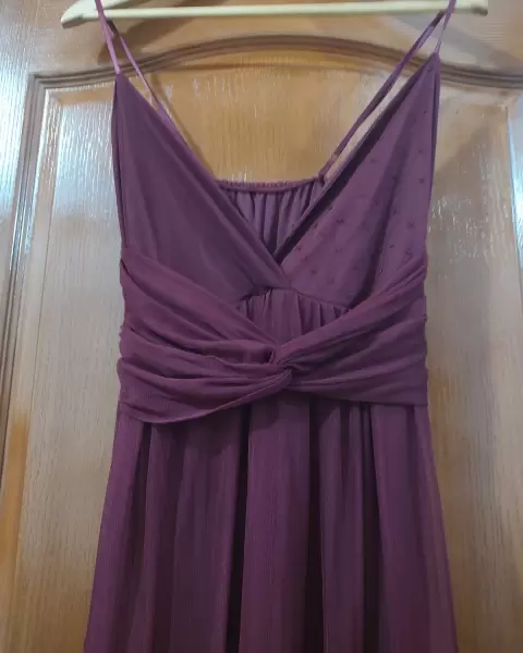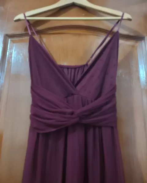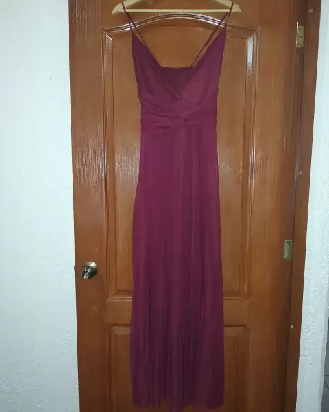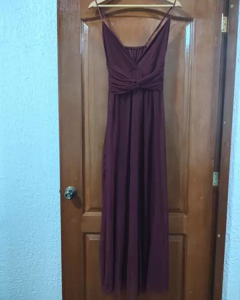Vestido vino. Abertura en ambas piernas tirantes ajustables, tela strech, vestido largo, forro stretch