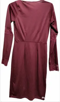 Vestido en color vino de manga larga, entallado al cuerpo, es nuevo y en la parte de las mangas tiene encaje que lo hacen elegante✨🤩