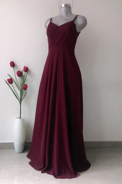 Fantástico vestido color vino con diseño de escote tipo corazón y falda amplia con plisado al centro. Con escote drapeado tipo colgante en espalda.De silueta tipo princesa con estilo vaporoso.Tela de gasa completamente forrado: 100% poliéster. No ajustableMarca Sorella VitaTalla 10. MedianaPecho 88 cmAxila/axila 44 cmCintura alta 75 cmCadera 110 cmLargo desde escote 145 cmPrenda en perfecto estado ¡Como nueva!. Sin detalles. Se envía listo para su uso lavado y/o con tintorería de acuerdo a las indicaciones de su etiqueta.Listo para envió el mismo día de tu compra o día siguiente.Recomendación muy importante: Checar las medidas que se especifican en la descripción, que estén dentro de las medidas de tu silueta para que esta prenda te quede perfecta.
