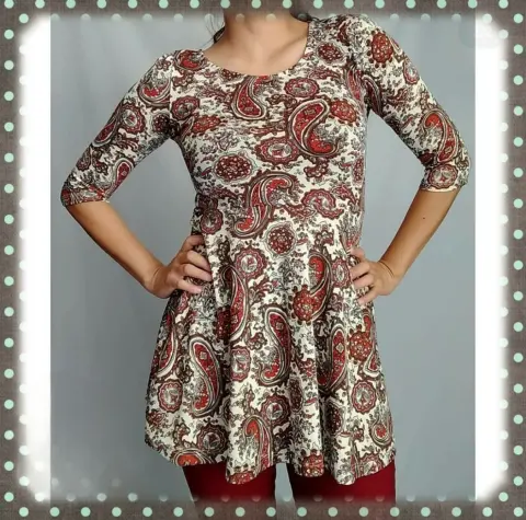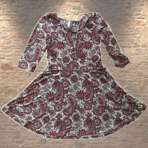 Hermoso vestido vintage con estampado paisley, marca Zee, unitalla. 90% poliéster y 10% elastano. Estira, muy ligero y fresco.Hombro a hombro 28 cm.Axila a axila 38 cm.Largo total 69 cm.