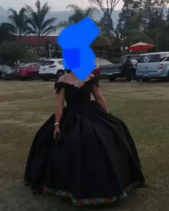 Vestido Xv años. Hermoso vestido de Xv años negro mate y pedrería en le conteste detalle de flores bordadas en la parte inferior.
