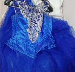 Hermoso vestido de xv añosColor azul rey, con brillos, bordado a mano.Falda+corset+tutu+chalina para la iglesiaDiseñador de alta costura Marco de Ajuria