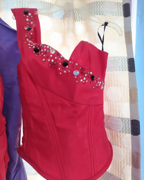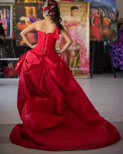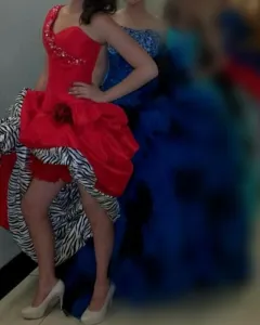 Vestido de quince años de Alta costura Ana Karen color rojo con animal print, dos piezas: corset y la falda. Muy buen estado.