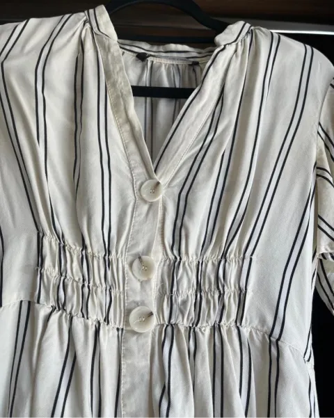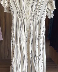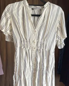 Vestido Marca ZARATalla S 26 Color beige con rayas azules Perfecto estado sin detalles