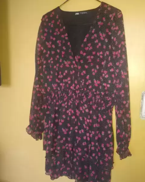 Vestido Zara. Vestido de gasa. Con flores rojas elástico en la cintura cuello en v súper. Bien para noche relajada