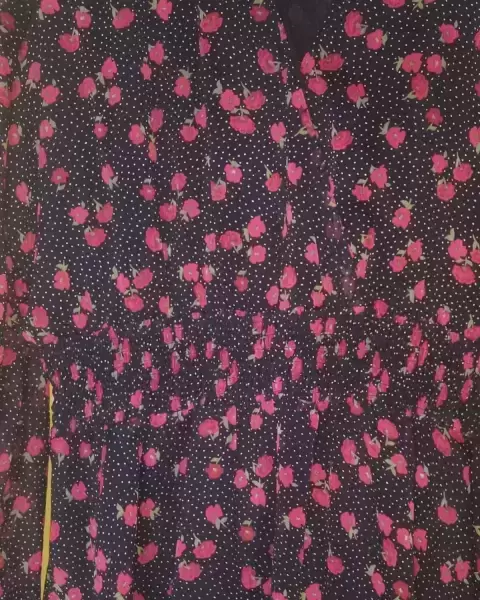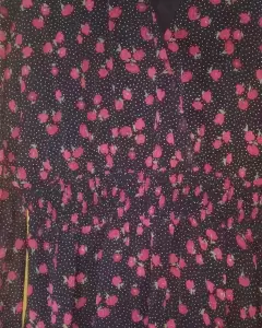 Vestido de gasa. Con flores rojas elástico en la cintura cuello en v súper. Bien para noche relajada