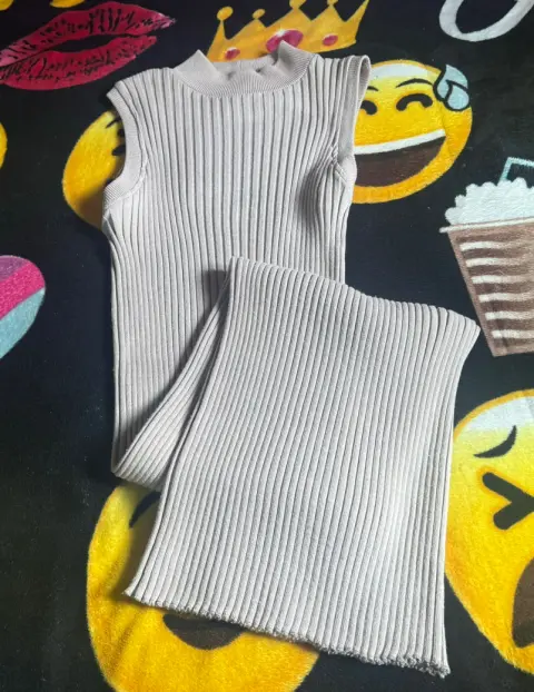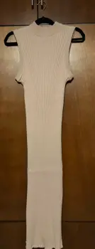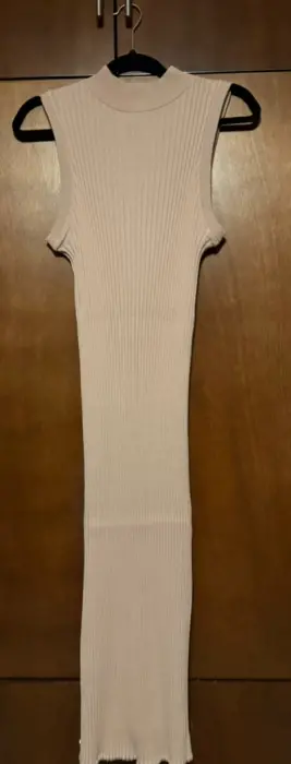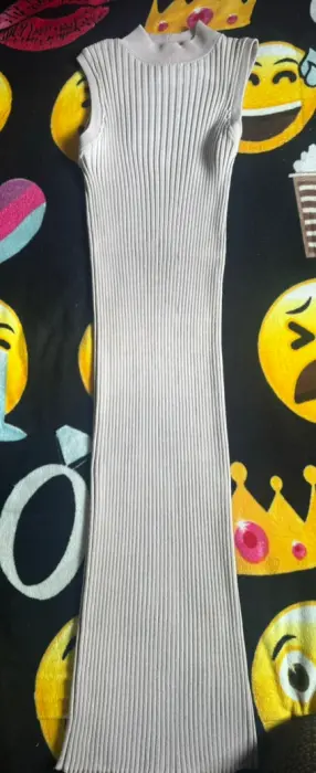 Vestido largo de zara, color mide, cuello redondo,sin manga, de algodón,talla mediana sin detalles, una puesta.