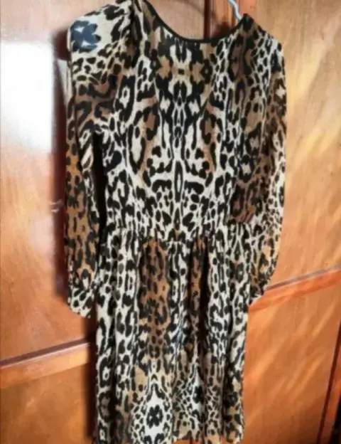 Vestido corto talla xs con estampado animal print, marca Zara, en excelente estado, de tela fresca.