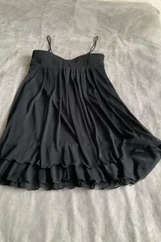 Vestido2. vestido de fiesta color negro, la luz no le ayuda en las fotos pero es negro. tiene una caida muy bonita, llega arriba de la rodilla.