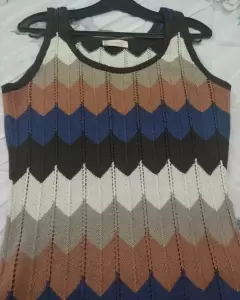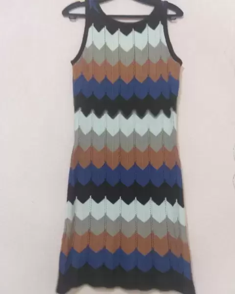 Vestido tejido, sin mangas, fresco y calientito, útil para cualquier epoca del año!!Elaborado en acrílico y poliéster. Marca Andrea. Talla: M.Medidas: 49 cm de axila a axila.43 cm de cintura. 99 cm de largo.💝 Aplica a todos los vestidos de mi clóset con la leyenda 2x1!! Elige tu Dúo ya!!