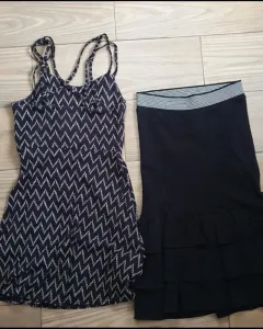 Dos vestidos cortos talla chicaUno es aeropostale de tirantes y estampado de grecas Es tipo corsé tiene varilla lateral por lo que no se mueve y da más forma y falta corte AEl otro es strapless sasha super sport con falda olan super femenino perfecto para un date casual