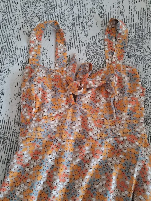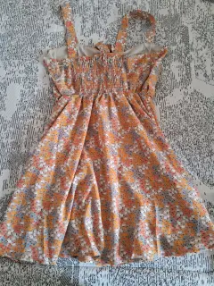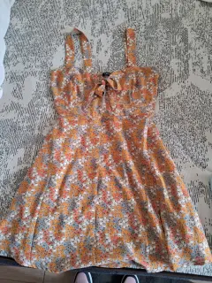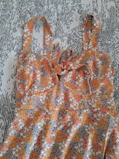 Vestido floreado color amarillo las flores son diferente color no es muy largo ni tampoco muy corto es nuevo, cuenta con una cinta en la parte del escote que luce muy bien