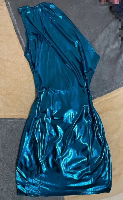 Vestido nuevo ..talla G de una sola manga ,tela vinipiel con likcra tela delgada ...horma muy bien..