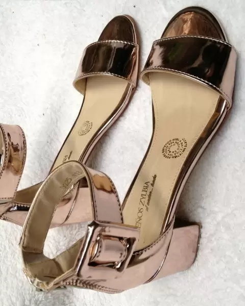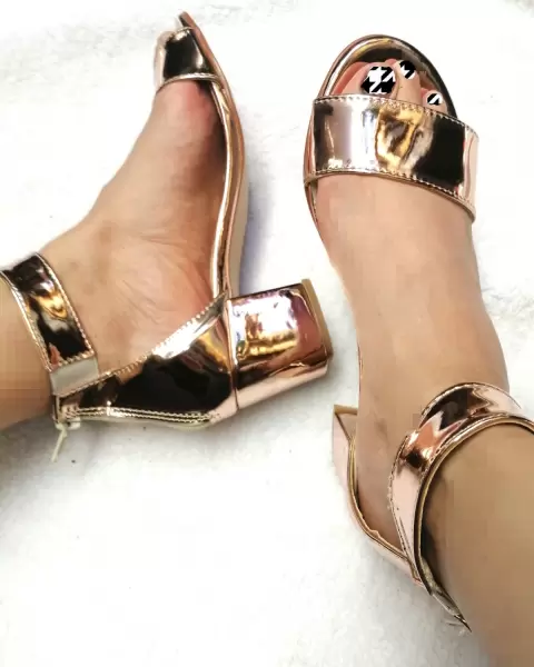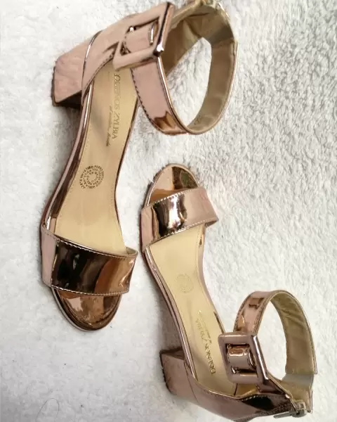 Hermosa zapatilla Charol Dorado, color oro rosado, de adorno pulsera, diseño ajustable de pequeño resorte y cierre detrás para fácil poner, altura suela tacón de 5.5cm. Mexicano Número #23.5cm. Lo que necesites: Pregúntame o visita mi closet para más modelos y númeración. En tu primer compra dentro de la app se te descuenta -$100 usa mi código Promocional.