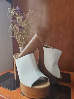 Blancos coquette. Hermosos zapatos blancos plataforma ancha madera, cómoda. Destalonados. Nuevos, plantilla acojinada. Piel. Nuevos