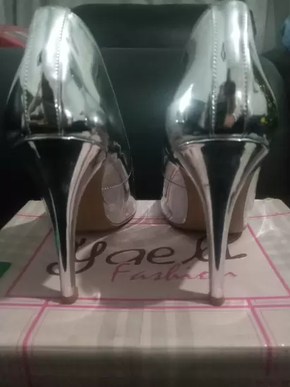 Bonitos zapatos de tacon plateados. Zaptaos de tacon , no. 6 plateados una sola puesta, muy lindos