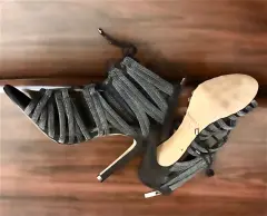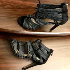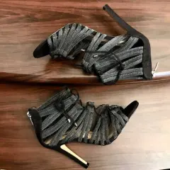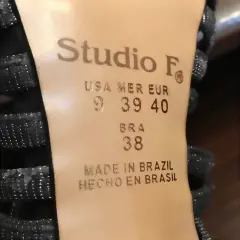 Deslumbrantes zapatillas abiertas STUDIO F. Están increíbles, ideal para combinar con un look elegante, tiene acabado brillante pero sutil por ello lucen súper bien, talla , vienen bien desde 5.5 y se ajustan con un cordel tipo agujeta..